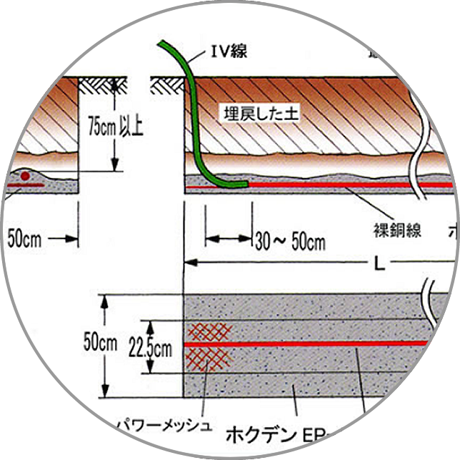 導電性コンクリートにより、長期間にわたり安定した接地抵抗値を維持します。